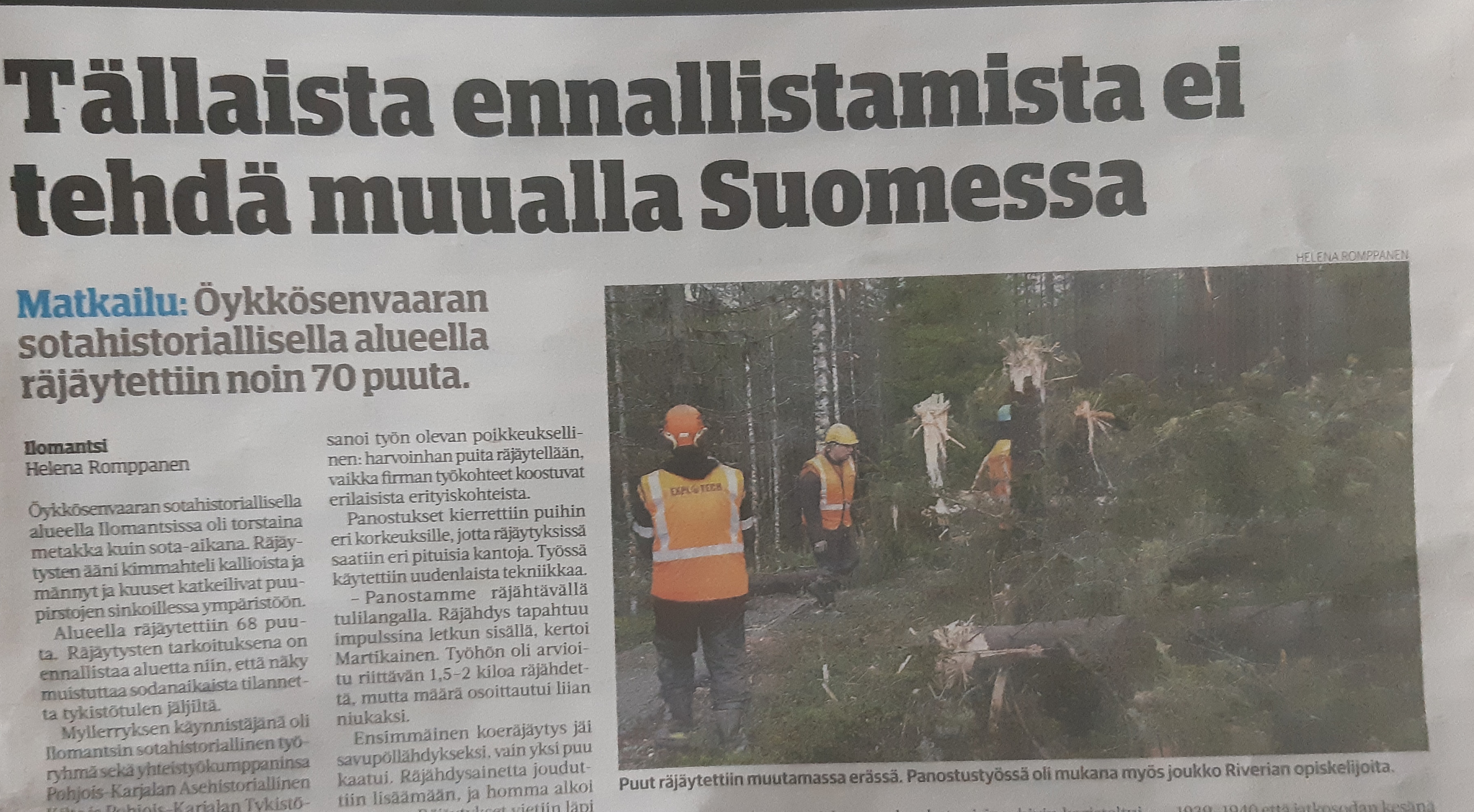Karjalaisen uutisessa 30.10.2020 kerrottiin ihastellen puitten räjäyttämisestä. Eikö tämä jos mikä ole metsän tuhontaa?
