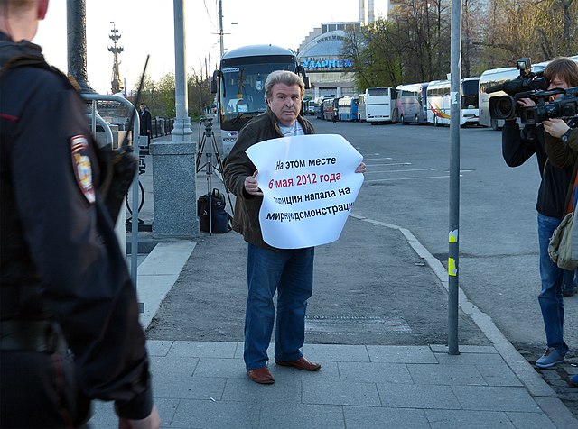 Yhden hengen protesti mielenosoitusoikeuden puolesta. Авторство: ПОКА ТУТ. Собственная работа , CC BY-SA 4.0, https://commons.wikimedia.org/w/index.php?curid=41274151