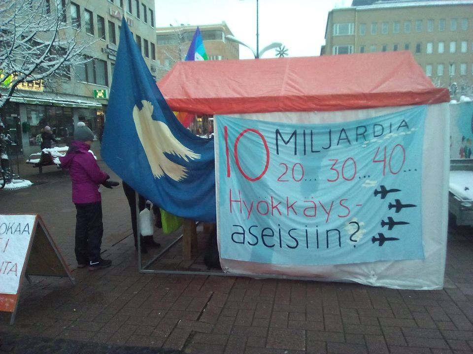 Rauhanliike korostaa tätä laajaa turvallisuuskäsitystä. Kritisoimme sitä, että hallitus käsittelee turvallisuutta lähinnä sotilaallisena ongelmana, sijoittaa aseisiin ja suuntautuu sotilasliittoon. Sotilasmenojen osuus budjettimenoista on kasvanut tällä hallituskaudella yli 30 prosenttia, 5,5 prosentista 7,9 prosenttiin (Sadankomitea). Taannoin annettiin lisätalousarviossa lisää rahaa aseisiin ja sotilaskoulutukseen. Joulukuinen hävittäjähankinta merkitsee ainakin 10 miljardin menoja tulevina vuosina, samaan aikaan kun sosiaalituista kiistellään ja työttömyystukia heikennetään.
